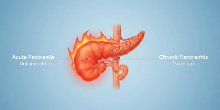 Pancreatitis is inflammation of the pancreas, an organ responsible for digestion and blood sugar control. Acute pancreatitis develops suddenly and may resolve with treatment, while chronic pancreatitis is long-term inflammation that can lead to permanent pancreatic damage and ongoing digestive problems.